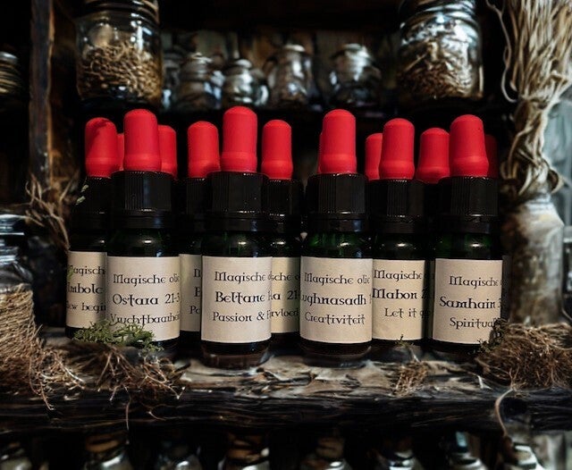 Ik creëer elke magische olie met zorgvuldig geselecteerde etherische oliën en een bijpassende drager olie, elk afgestemd op een unieke intentie.